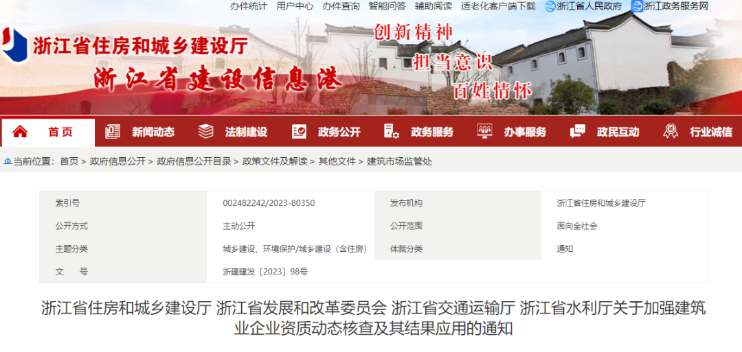 各市、縣(市、區)建委(建設局)、發展改革委(局)、交通運輸局、水利局、招標投標監管機構、各有關單位: 為深入貫徹落實《國務院辦公廳關于促進建筑業持續健康發展的意見》(國辦發〔2017〕19號)、《浙江省人民政府辦公廳關于進一步支持建筑業做優做強的若干意見》(浙政辦發〔2022〕47號)和《住房城鄉建設部關于進一步加強建設工程企業資質審批管理工作的通...