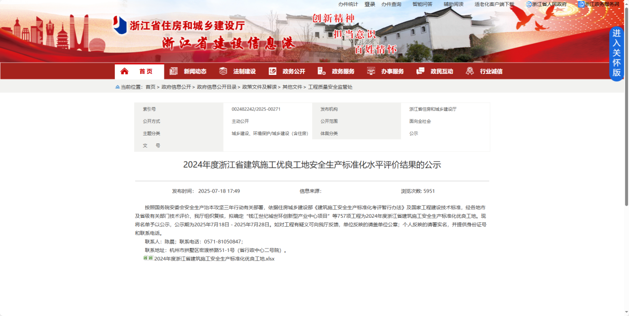 近日,經相關地市級及省級有關部門考核、浙江省住建廳組織審查,經評選認定,我公司承建的“紹...