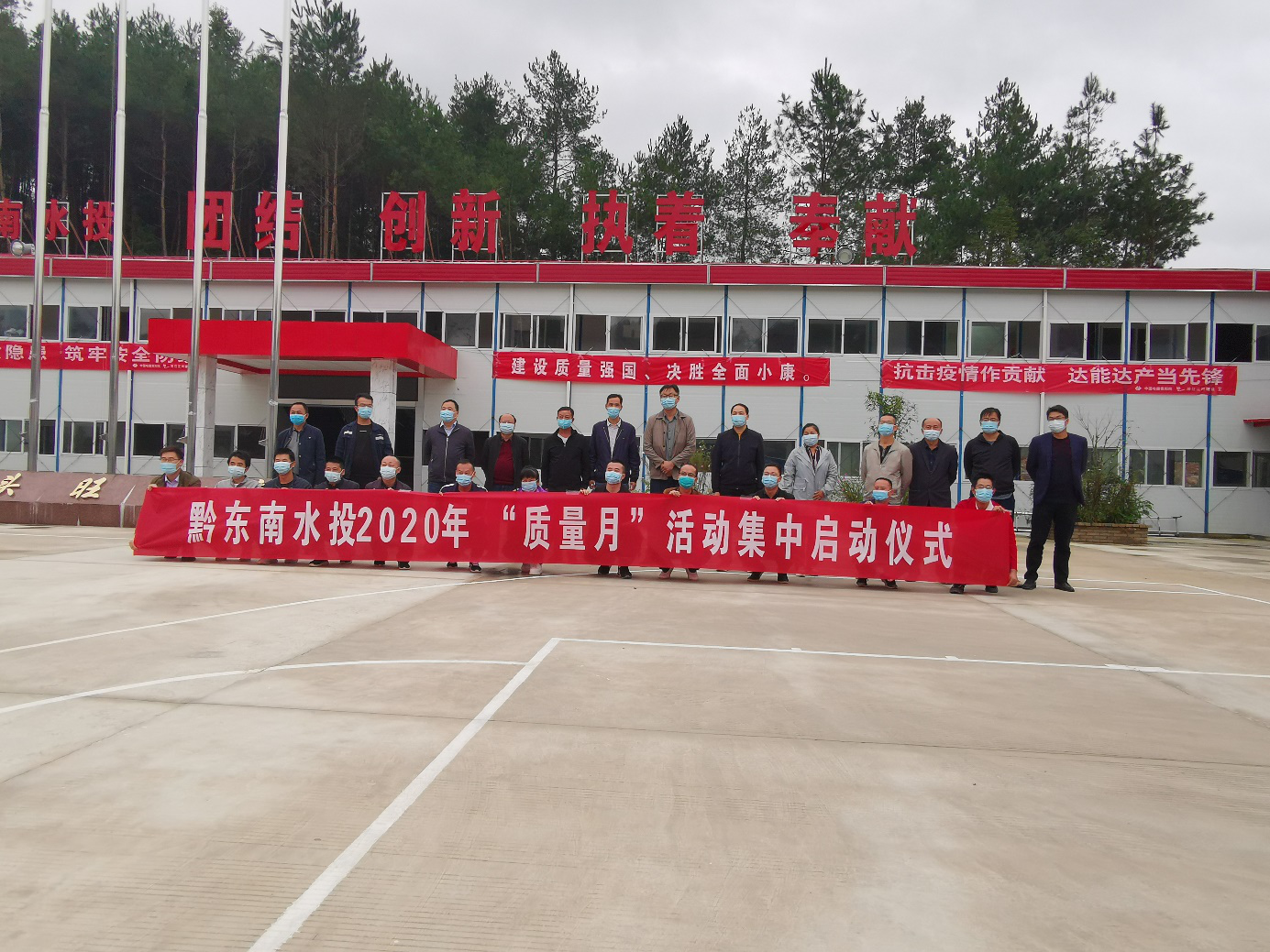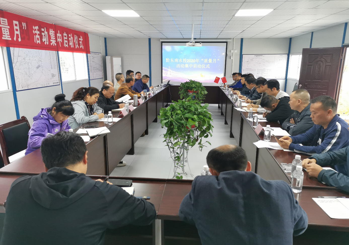 近日,公司施秉白頭旺水庫項目部參加由黔東南州水投組織舉辦的2020年“質量月”活動啟動儀式?;顒蝇F場,空寨水庫、金昌溝水庫、青塘水庫各參建單位組成觀摩團,先后對現場實驗室、右岸導流洞、鋼筋加工棚進行施工質量考察,并聽取各項目管理單位介紹工程施工情況。