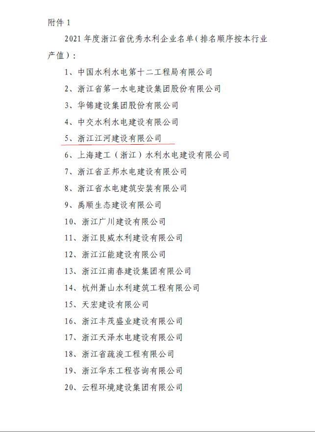 近日,浙江省水利建設行業協會公布了浙水建協(2022)6號文件,對我省一批水利企業、水利企業家、水利建造師、水利總監理工程師進行了表彰通報。其中浙江江河建設有限公司榮獲“2021年度浙江省優秀水利企業”,公司董事長袁偉忠獲“2021年度浙江省優秀水利企業家”稱號。